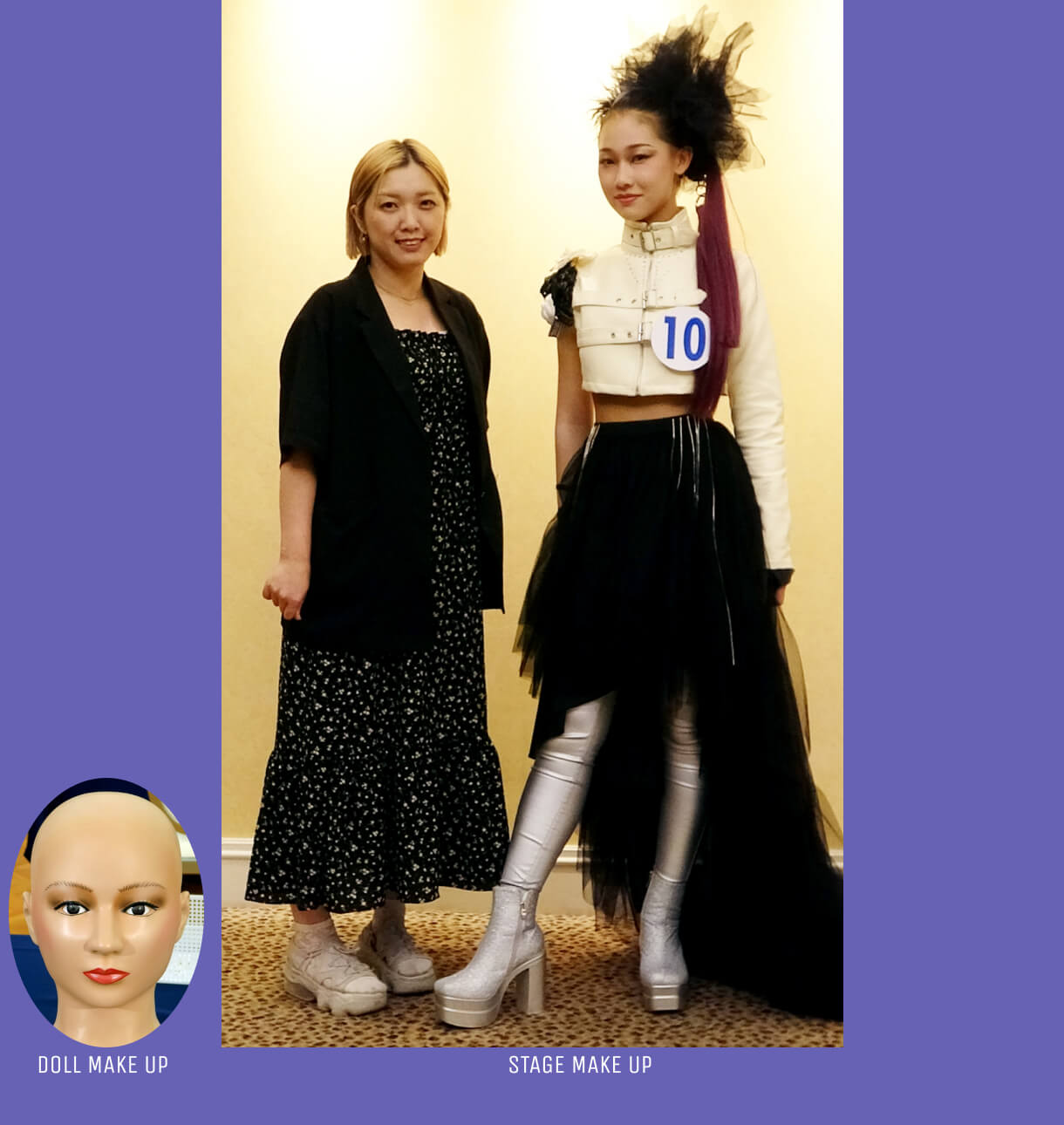 モデルによるステージメイクアップとドールによるメイクアップの2部門の合計評価で競い合う、