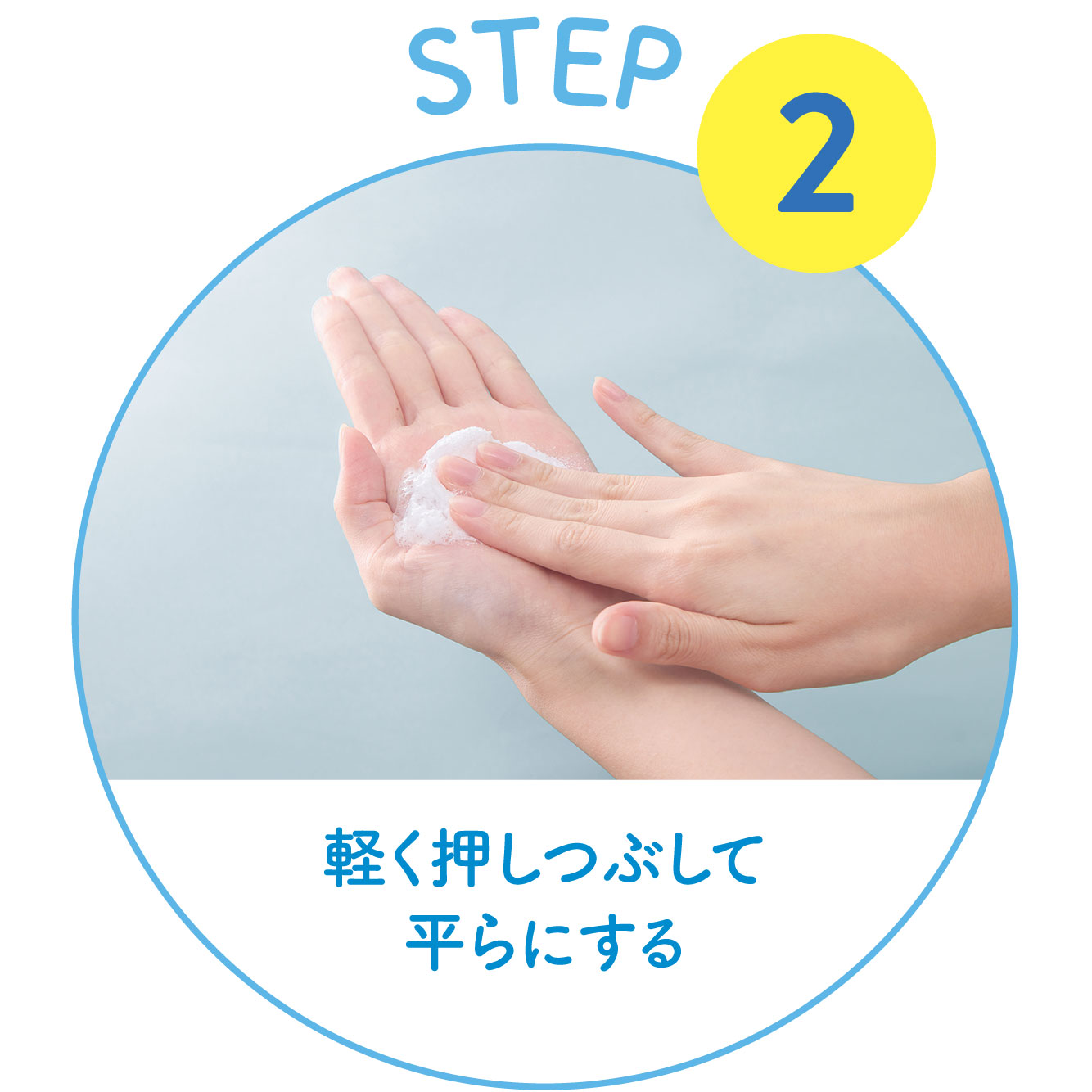 STEP2 ②手のひらで軽く押しつぶして平らにします。 |