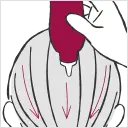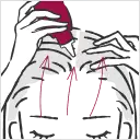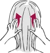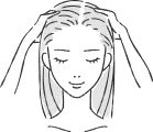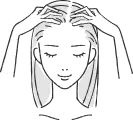 5本の指先を使って、地肌をつかむように置き、指先の位置を動かさずに頭頂部に向かって引き上げるようにマッサージします。