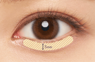 目の下5mmの幅を目安に涙袋全体にパウダーを乗せると目もとに光が集まり涙袋がぷっくりした印象になります。