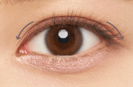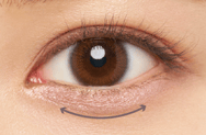 二重の線を延長するように↔︎部分に線を描き足すと、横幅の広い大きな目もとに見せることができます。二重の線が薄い場合は全体的にラインを入れると、ぱっちりした目もとを演出できます。